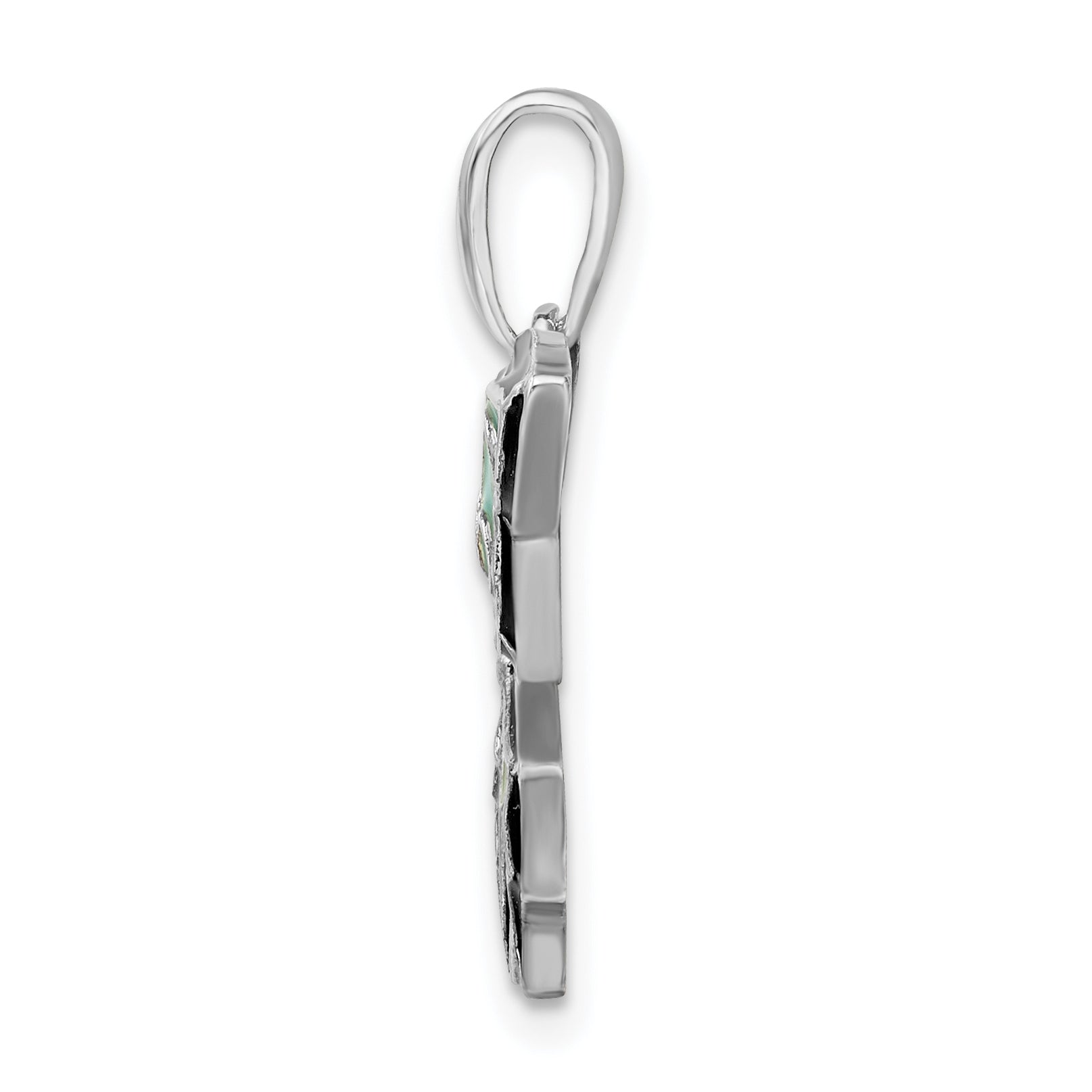 Discover the Sterling Silver De-Ani Rhodium-Plated Polished Enameled Aqua Butterfly Pendant, a true work of art for any jewelry enthusiast. Crafted from 925 sterling silver and finished with a rhodium plating, this pendant captures elegance and charm. It features a polished, enameled butterfly in a beautiful aqua hue, measuring 19.2mm in length and 28.5mm in width. The detailed enamel work brings a vivid splash of blue that stands out against the silver tone. Perfect for adding a playful yet sophisticated touch to any outfit, the Sterling Silver De-Ani Pendant is a must-have addition to your collection.