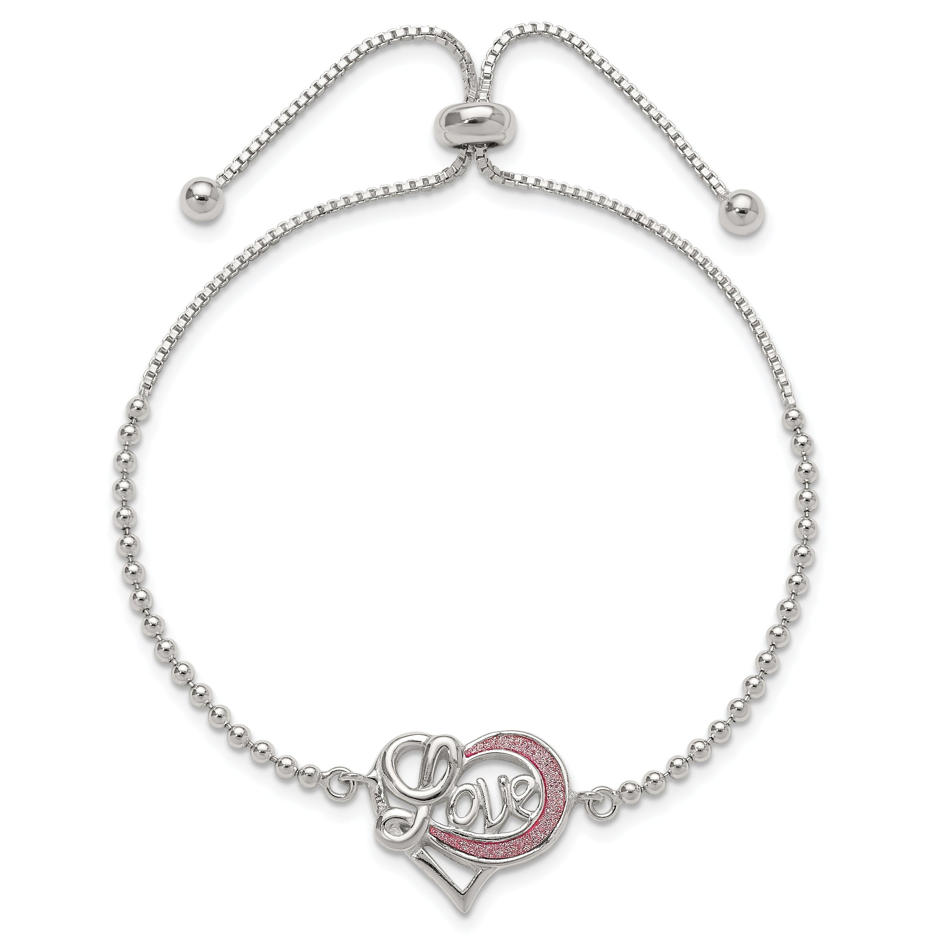 Sterling Silver Glitter Infused Infinity Love Adjustable Bracelet