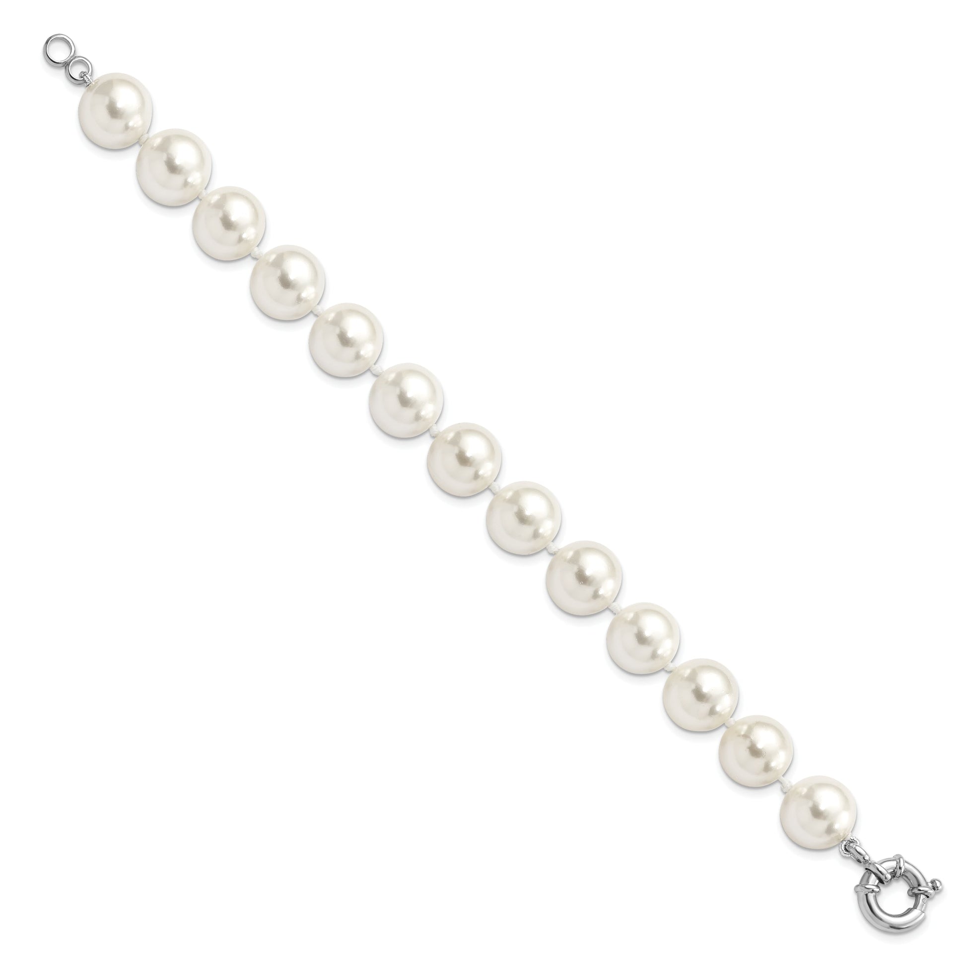 The Sterling Silver Majestik Rhodium-Plated 12-13mm White Imitation Shell Pearl Hand-Knotted Bracelet exudes elegance and sophistication. Crafted from high-quality 925 sterling silver, this bracelet features rhodium plating for a radiant silver tone. The centerpiece includes stunning 12 to 13 mm white imitation shell pearls that captivate with their pristine luster. Each pearl is hand-knotted, ensuring the bracelet's durability and offering a classic touch. Ideal for any occasion, this piece is thoughtfully packaged in a gift pouch, making it a perfect present. Enhance your style with the Sterling Silver Majestik Rhodium-Plated Bracelet today.