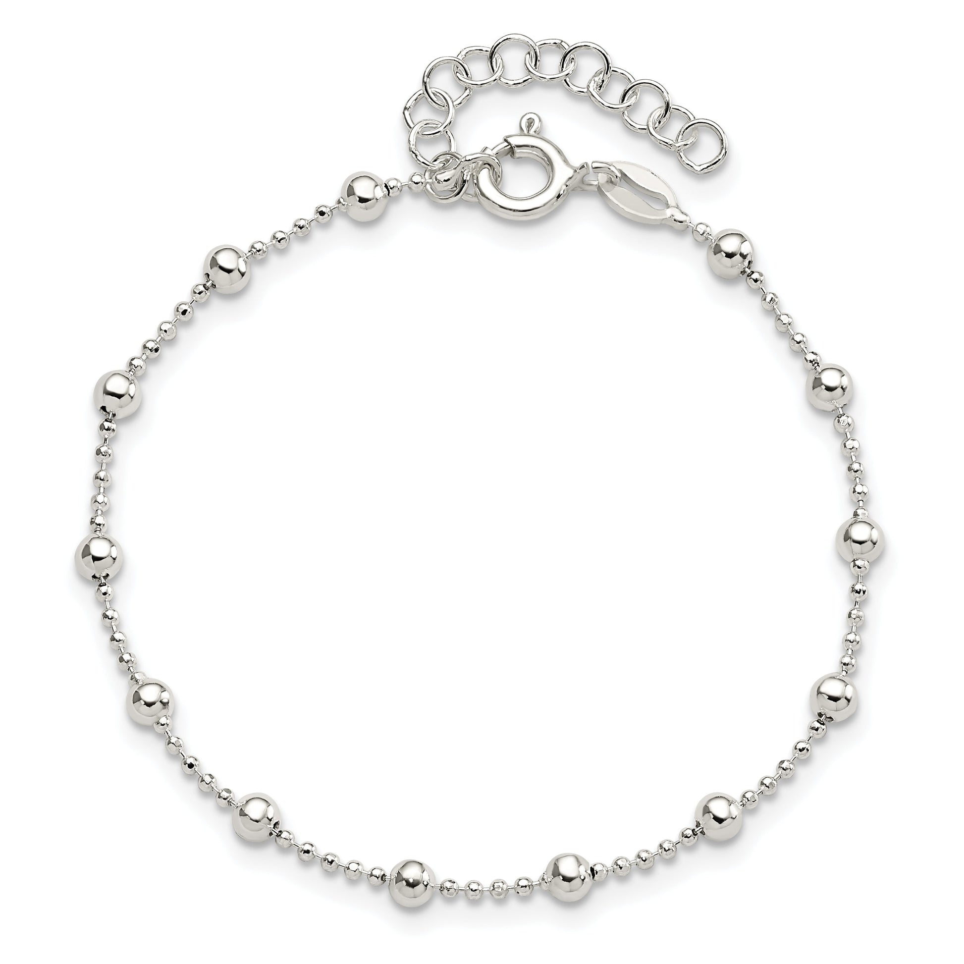 The Sterling Silver Polished Beaded Bracelet is the perfect piece to add a touch of elegance to your wrist. Crafted from 925 sterling silver, this bracelet shines with a polished finish. It measures six inches, with an extra inch for the extender to ensure a comfortable fit. The delicate chain, just one millimeter wide, showcases charming bead elements, each three millimeters in size. A sturdy spring ring clasp ensures it stays secure. Designed for women, this beaded beauty speaks to classic style. The Sterling Silver Polished Beaded Bracelet is your go-to accessory for any occasion.