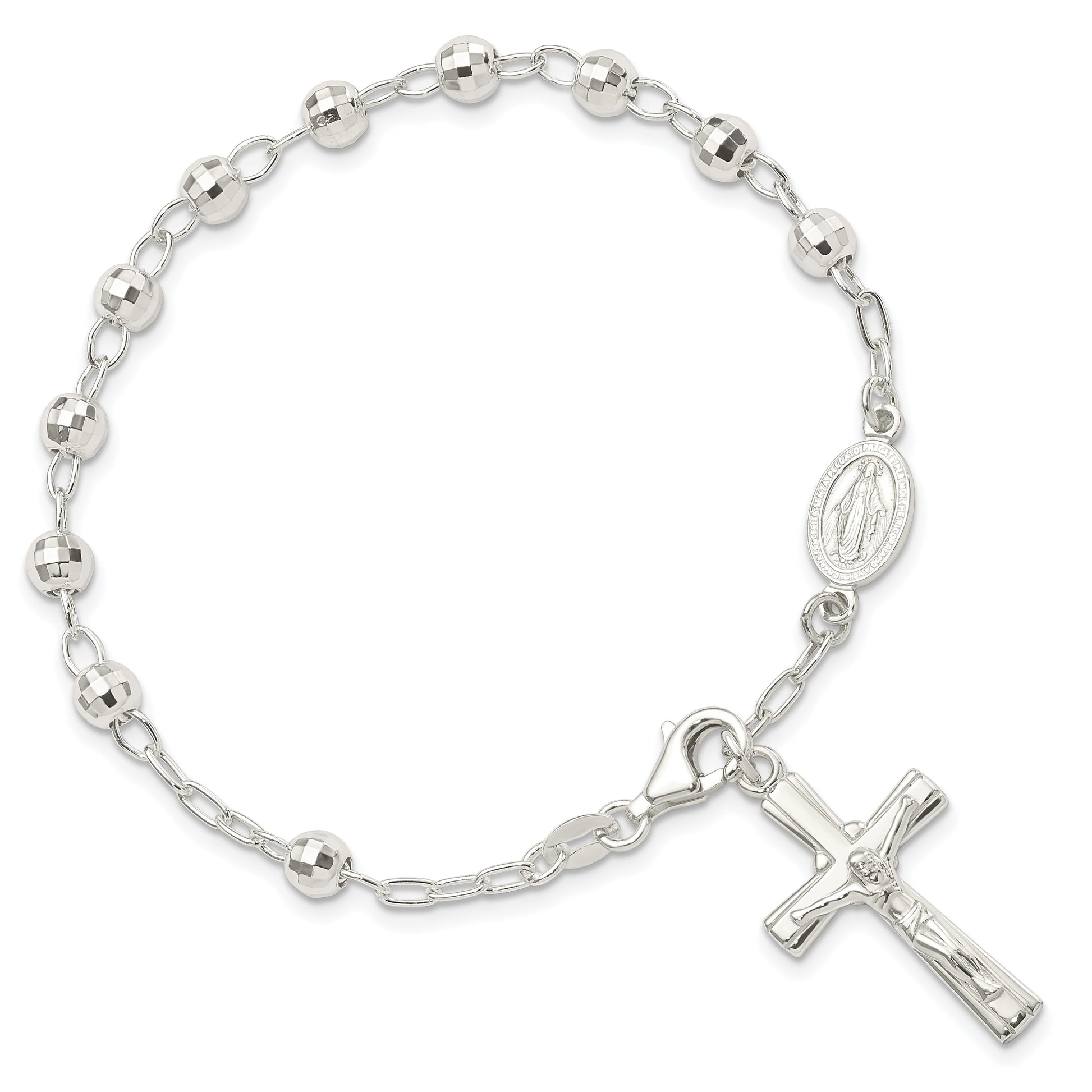 Experience elegance with the Sterling Silver Polished Beaded Rosary 7.5 Inch Bracelet. Crafted from genuine 925 sterling silver, this bracelet delivers both beauty and strength. Its polished finish gleams with a refined touch, while the beaded ball chain design adds a unique texture. With a 7.5-inch length and 5.12 mm width, it fits comfortably on any wrist. The sturdy lobster clasp ensures easy fastening. This bracelet is a solid choice for both men and women who appreciate timeless jewelry. The Sterling Silver Polished Beaded Rosary Bracelet is more than an accessory; it's a statement piece.