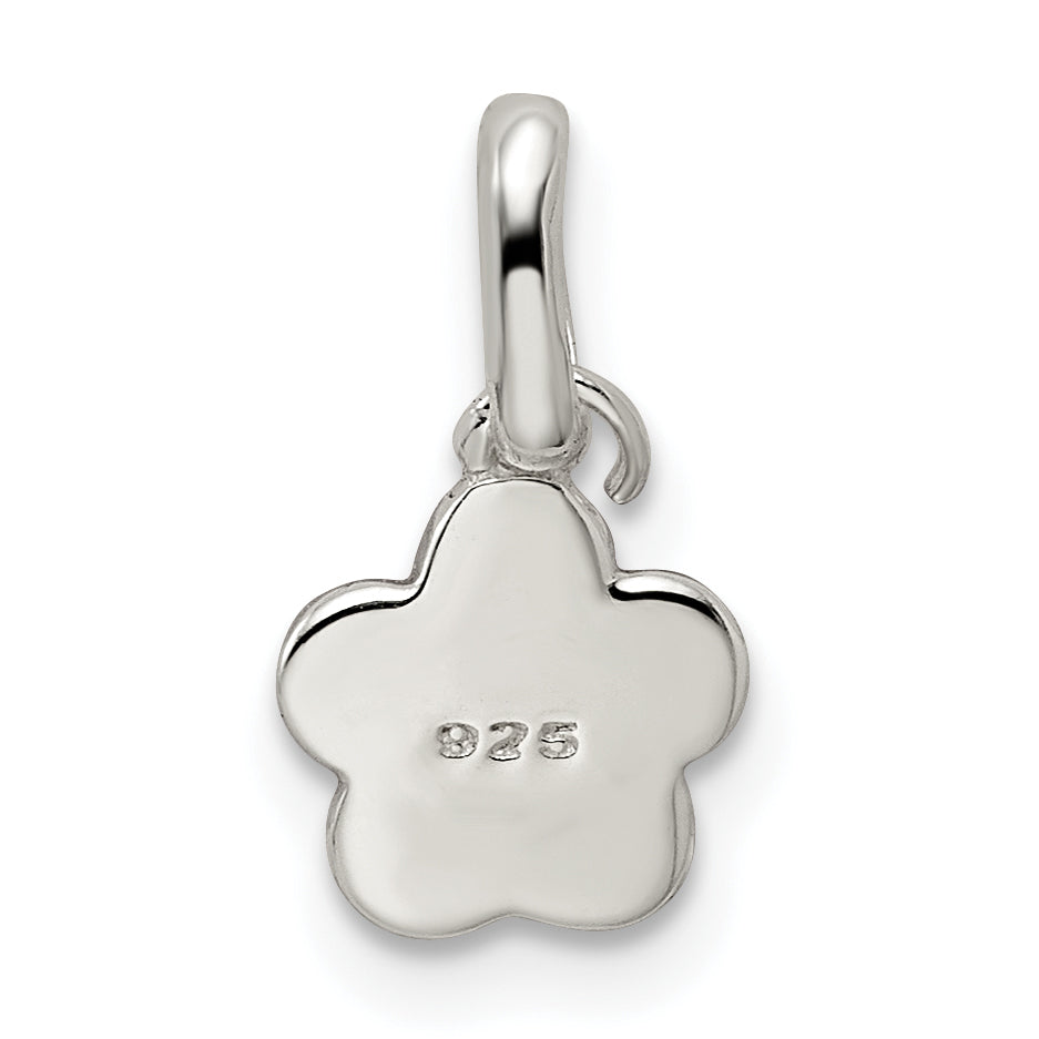 Sterling Silver Polished Pink Enameled Flower Children'S Pendant