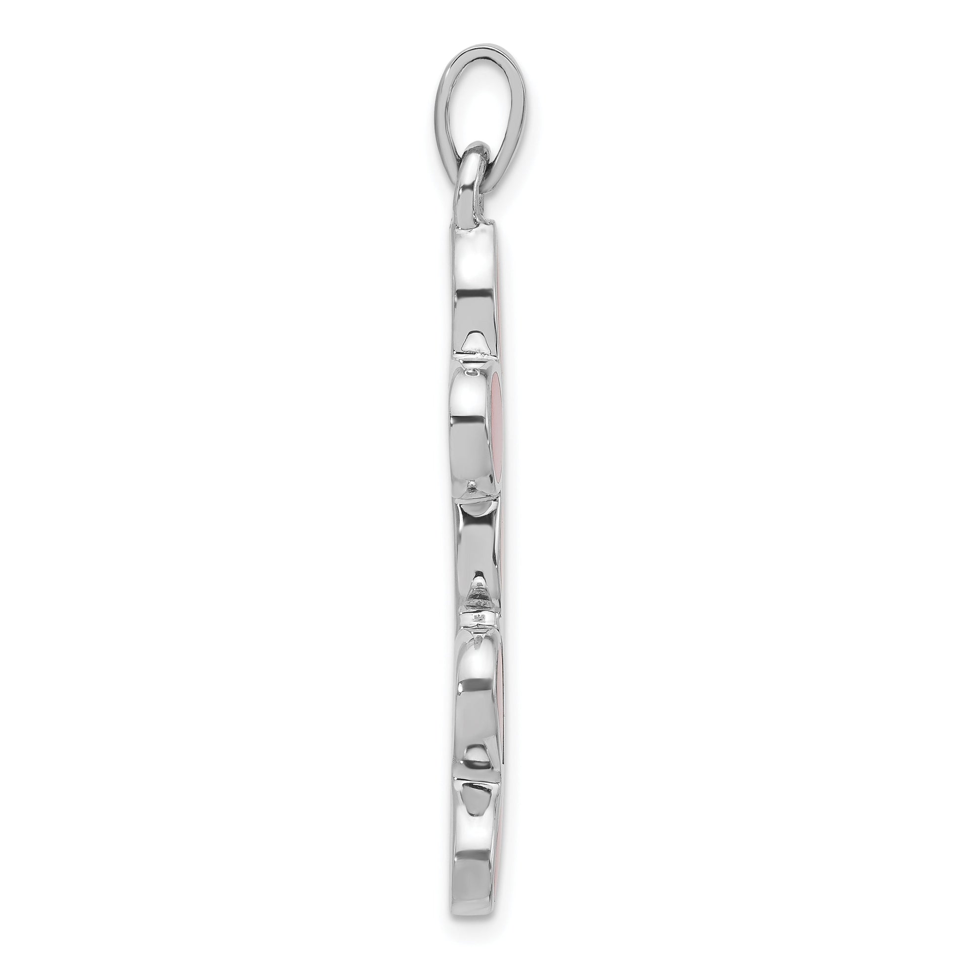 Introducing the Sterling Silver Polished Pink Shell Double Butterfly Pendant, a radiant piece that captures the essence of elegance and femininity. Crafted from high-quality 925 sterling silver, this pendant showcases exquisite pink shells, naturally sourced to ensure unique beauty. Measuring 43.3 mm in length, with the charm itself at 38.4 mm, it offers a graceful drop that flatters any neckline. Each butterfly is polished to perfection, creating a bright sheen that catches the eye. The flat back profile and solid construction guarantee comfort and durability for everyday wear. Adorn yourself with the Sterling Silver Polished Pink Shell Double Butterfly Pendant and elevate your style with its delicate charm.