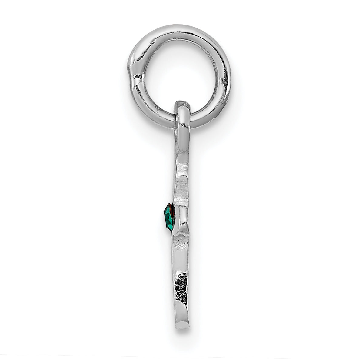 Introducing the Sterling Silver Rh-Pltd Child's May Green Preciosca Crystal Cross Pendant, a charming piece designed for little ones celebrating their birth month. Made from genuine 925 sterling silver, this pendant shines with rhodium plating. The polished finish enhances its timeless appeal. Showcasing a vibrant green Preciosca crystal, it's perfectly sized for a child's neck at 17 mm in length. The solid charm, casted with precision, measures 12.67 mm long and pairs beautifully with its 5.91 mm width. This piece captures the essence of May, making the Sterling Silver Rh-Pltd Child's May Green Preciosca Crystal Cross Pendant a classic keepsake.