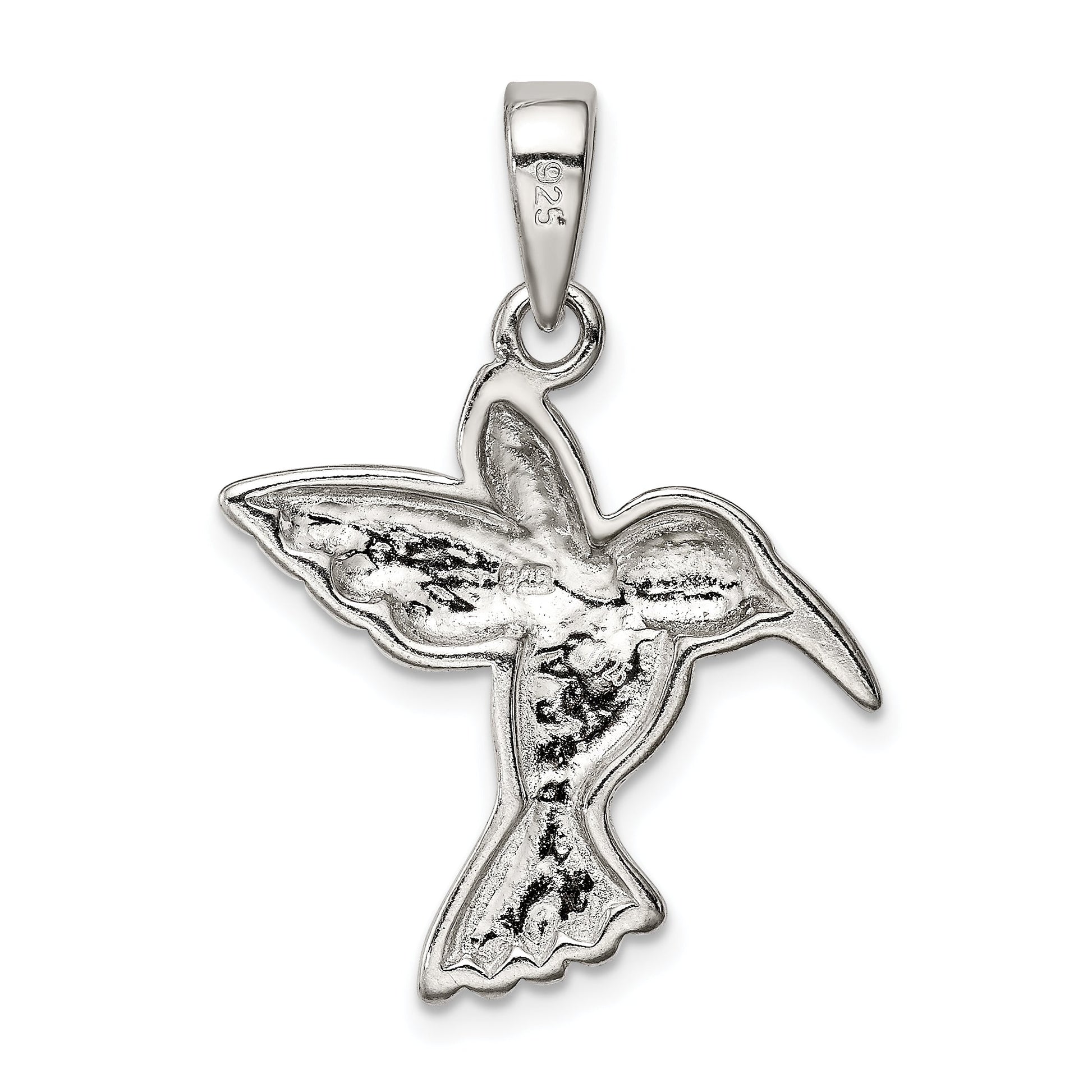 The Sterling Silver Rhodium Plated Created Opal Inlay Hummingbird Pendant is a stunning piece that captures attention. Crafted from high-quality 925 sterling silver, this pendant features a unique hummingbird design that sparkles with lab-created opal inlays. The opal stones reveal a captivating array of colors, infusing the piece with a touch of nature's beauty. Measuring 25 mm, the pendant is both elegant and lightweight, making it a versatile accessory for any outfit. Whether you're adding to your collection or giving a thoughtful gift, this Sterling Silver Rhodium Plated Created Opal Inlay Hummingbird Pendant is bound to impress.