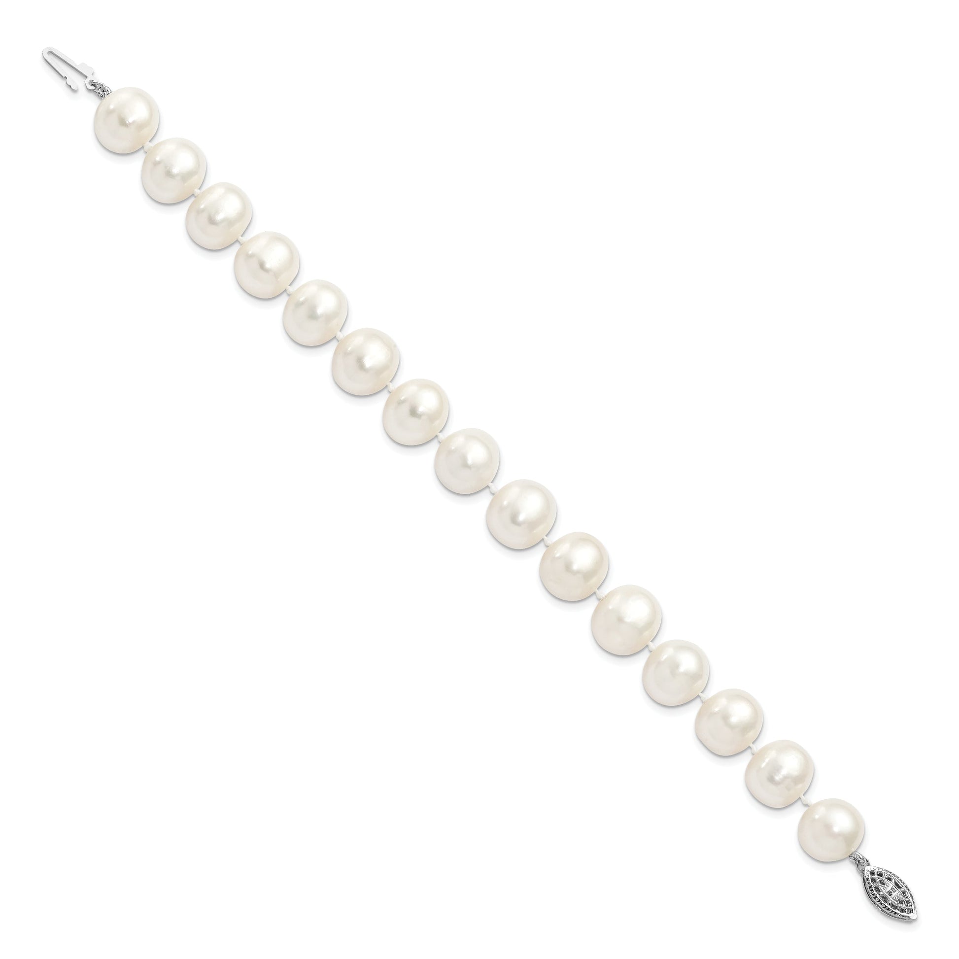 The Sterling Silver Rhodium 11-12mm White Freshwater Cultured Pearl Bracelet is a true masterpiece of elegance. Crafted with 925 sterling silver, this bracelet showcases near-round pearls that measure between 11 to 12mm, exuding timeless beauty. Each pearl is carefully cultured and treated to achieve its stunning white hue. The rhodium plating adds a lustrous finish, ensuring durability and a lasting shine. Designed for women who appreciate fine jewelry, this bracelet is both solid and stylish. With its classic design, the Sterling Silver Rhodium 11-12mm White Freshwater Cultured Pearl Bracelet makes a perfect accessory for any occasion.