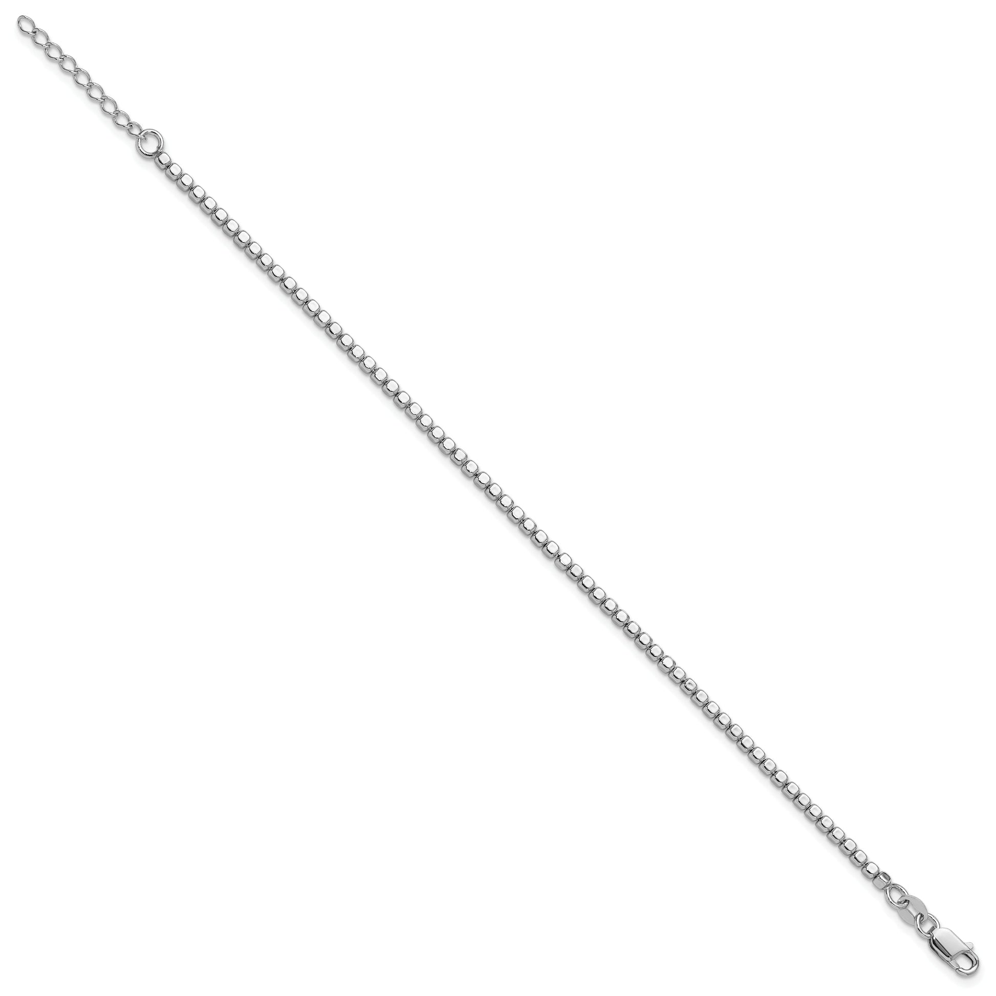 The Sterling Silver Rhodium-Plated Beaded With 1In Ext. Bracelet is a sleek accessory for any woman. Crafted from high-quality 925 sterling silver, it shines with a polished finish. The beaded design adds texture and charm, while the rhodium plating gives it a bright, silver tone that resists tarnish. Measuring 8 inches long with a 1-inch extender, this lightweight bracelet fits comfortably on the wrist. The lobster clasp ensures a secure fit, making it perfect for everyday wear or special occasions. With a lifetime guarantee, the Sterling Silver Rhodium-Plated Beaded With 1In Ext. Bracelet promises style and durability for years to come.