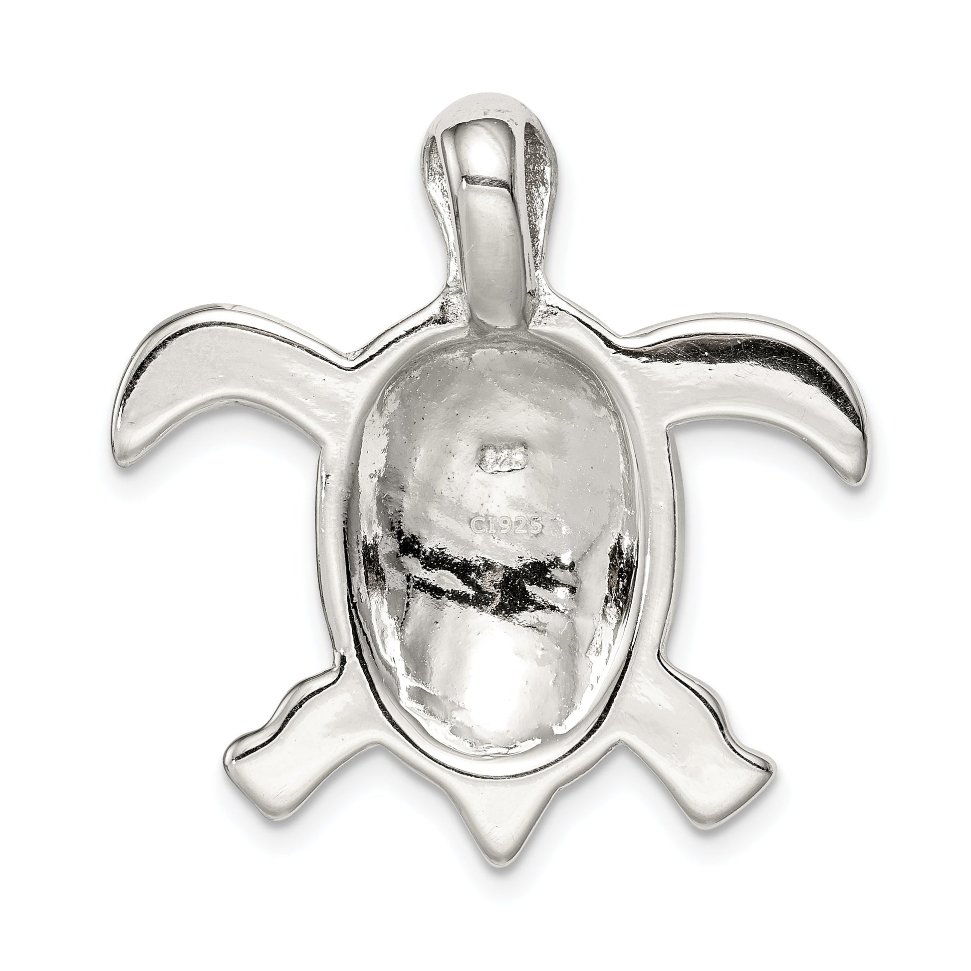The Sterling Silver Rhodium-Plated Blue Inlay Created Opal Turtle Pendant is a stunning piece of jewelry. Its vibrant blue opal, crafted in a lab, captures the eye with its unique play of color. Set in premium 925 sterling silver, the pendant is plated with rhodium for a sleek, silver finish. Measuring 29 mm in length and 27 mm in width, this turtle-themed charm sits beautifully against the skin. The opal's treated surface enhances its natural beauty and ensures superior quality. Add this turtle pendant to your collection for a touch of ocean-inspired elegance.