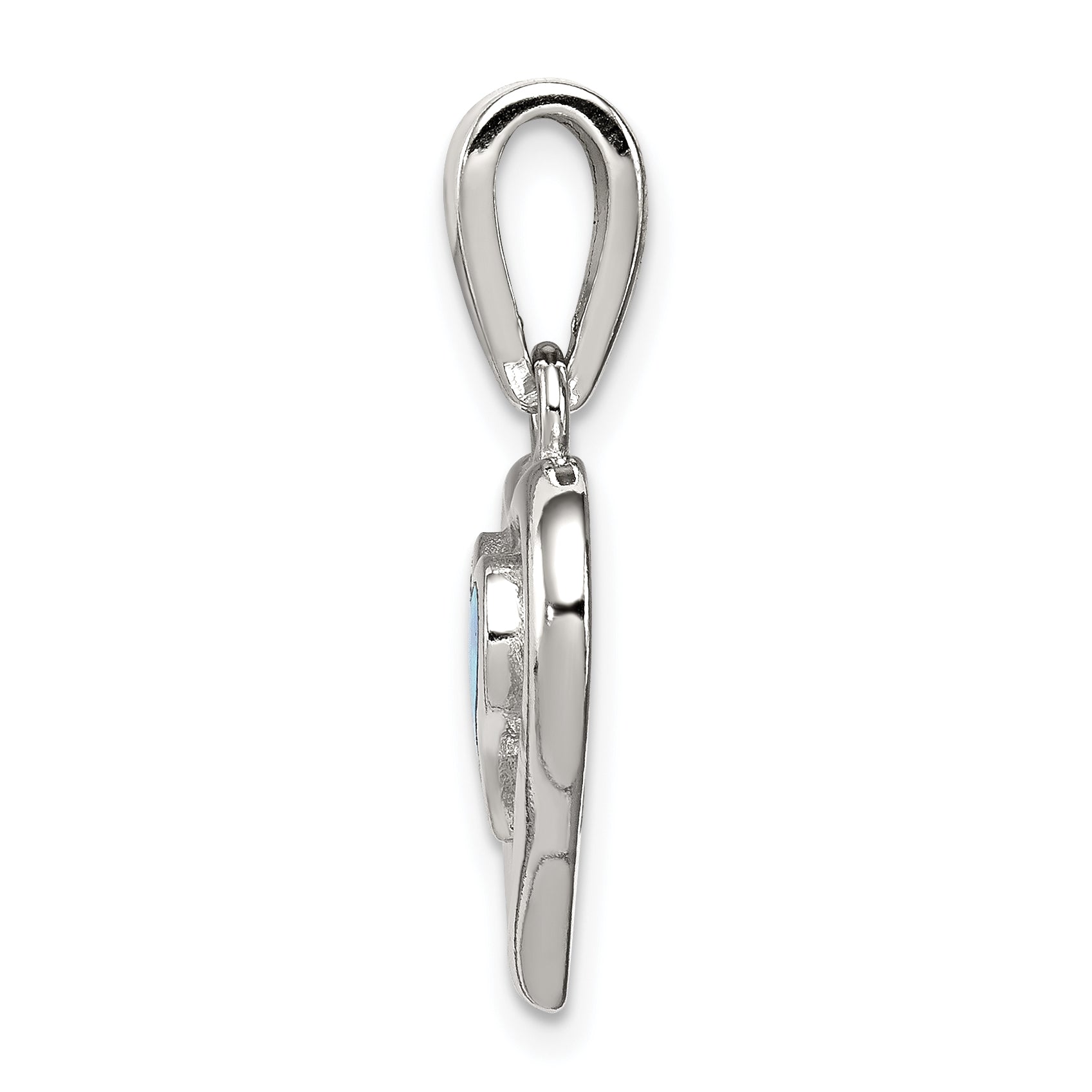The Sterling Silver Rhodium-Plated Created Blue Opal Inlay Heart Pendant is a captivating piece of fine jewelry. Crafted from high-quality 925 sterling silver, this polished pendant showcases a heart design with a vibrant blue opal inlay. The lab-created opal catches the eye with its mesmerizing color phenomena, adding a touch of elegance to any outfit. Its rhodium plating enhances durability and shine. Measuring 25.3 mm in length, this pendant hangs beautifully from any chain. Perfect for those seeking unique charm, the Sterling Silver Rhodium-Plated Created Blue Opal Inlay Heart Pendant is an exquisite choice for jewelry lovers.