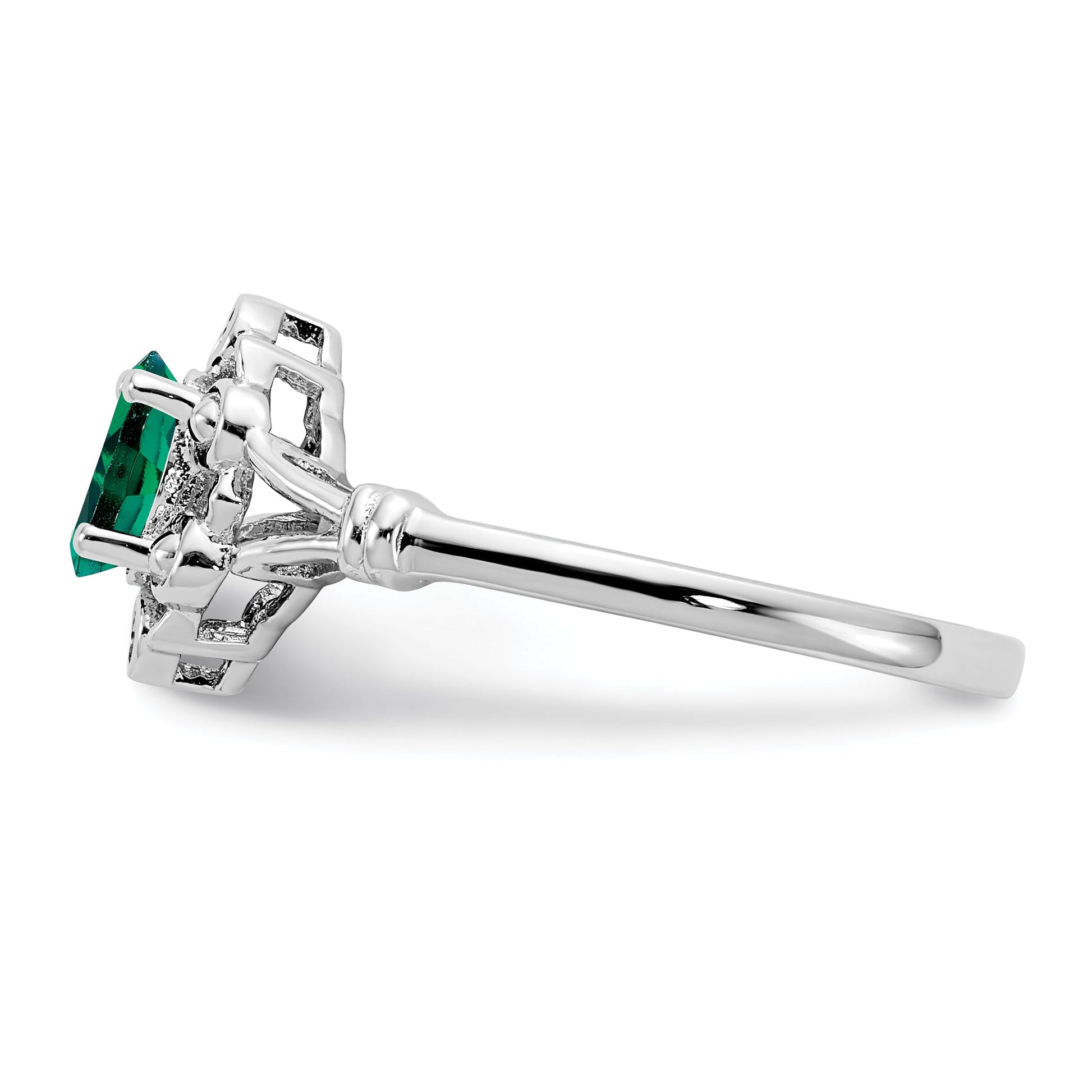 Sterling Silver Rhodium-Plated Created Emerald & Diam. Ring
