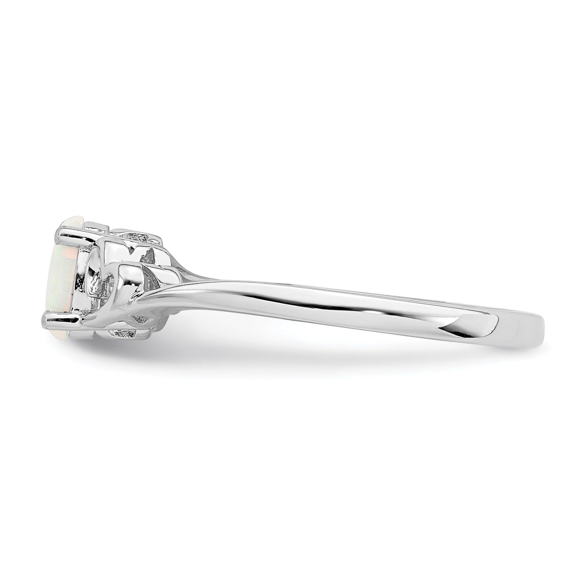 Elevate your style with the Sterling Silver Rhodium-Plated Created Opal Ring. This exquisite piece features a captivating oval lab-created opal, measuring 6 x 4 mm, and set in a delicate prong mounting. The primary material, sterling silver, is enhanced by rhodium plating, offering a brilliant silver tone. The opal, renowned for its iridescent phenomena, brings a touch of October’s birthstone beauty to your jewelry collection. Weighing just .31 carats, this solid cast ring ensures lasting charm for any occasion. Make a statement with the Sterling Silver Rhodium-Plated Created Opal Ring.
