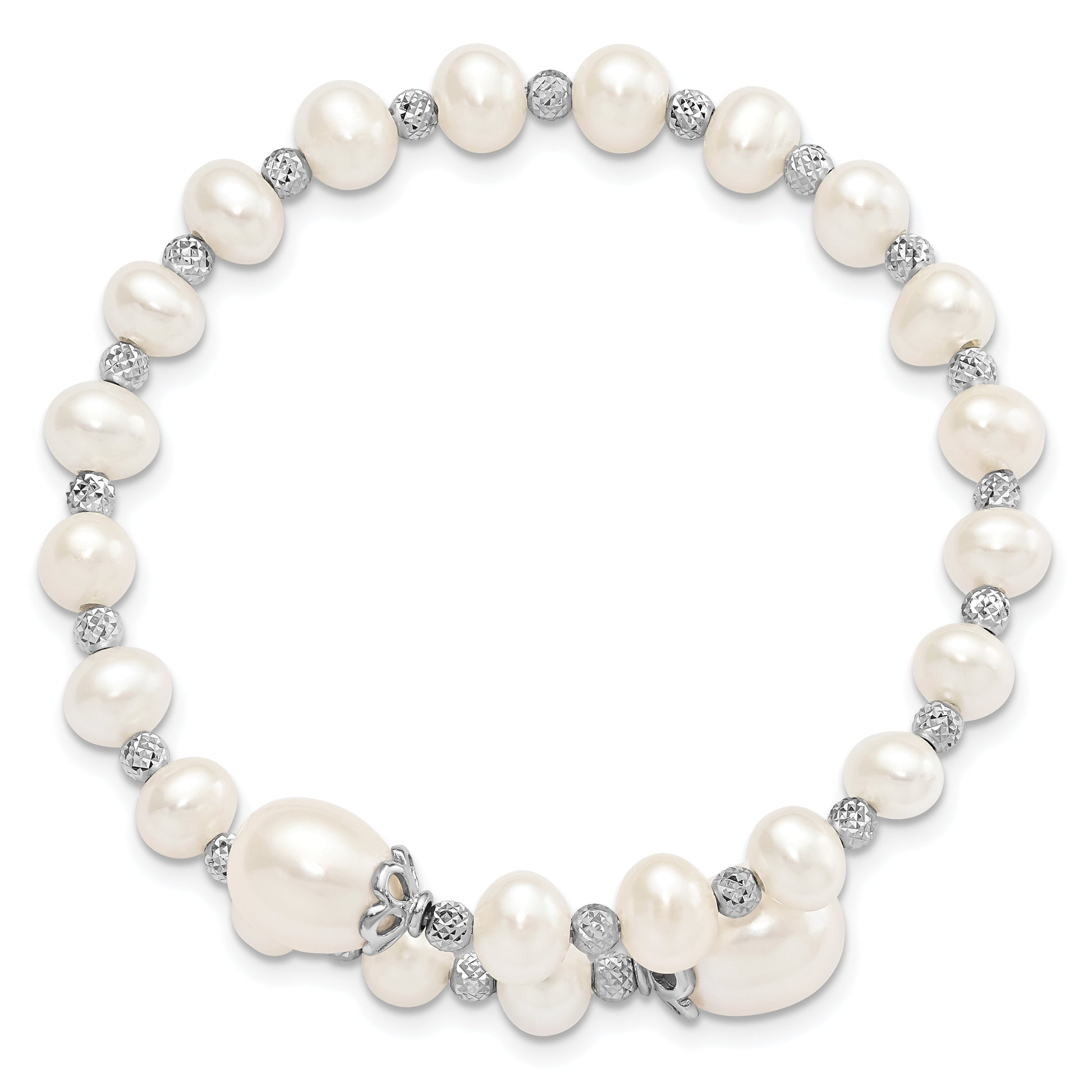 The Sterling Silver Rhodium-Plated Diamond Cut Beads and White Freshwater Cultured Pearl Wrap Bracelet brings elegance to any outfit. Crafted from 925 sterling silver and plated in rhodium, this bracelet exudes sophistication. The diamond-cut beads catch the light beautifully, while the cultured freshwater pearls, sized between 6-9mm, add a touch of class. Its flexible wrap design ensures a comfortable fit without a clasp. Perfect for women who appreciate jewelry that blends classic sophistication with modern style. Get this stunning Sterling Silver Rhodium-Plated Diamond Cut Beads and Pearl Wrap Bracelet to enhance your collection.