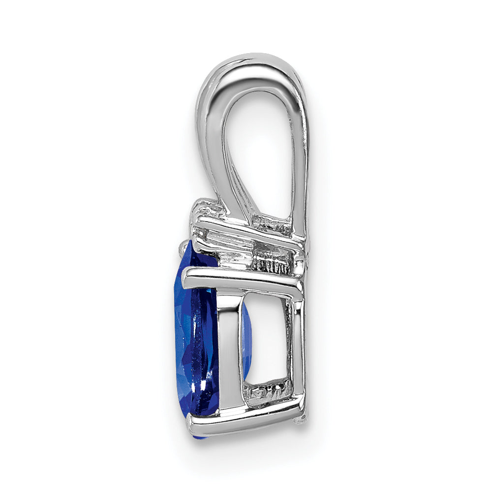 The Sterling Silver Rhodium Plated Diamond & Sapphire Oval Pendant sparkles with refined elegance. This necklace features a brilliant blue sapphire set in sleek sterling silver. The sapphires' oval shape, measuring 7x5 mm, adds a touch of opulence. The pendant sparkles further with two round white diamonds, heightening its allure. These gemstones embody natural beauty, each stone carefully placed to maximize shine. At 13 mm long and 6 mm wide, the pendant sits gracefully on the neckline. Celebrating September birthdays or simply expressing timeless style, this piece radiates sophistication. The Sterling Silver Rhodium Plated Diamond & Sapphire Oval Pendant is a jewelry essential.