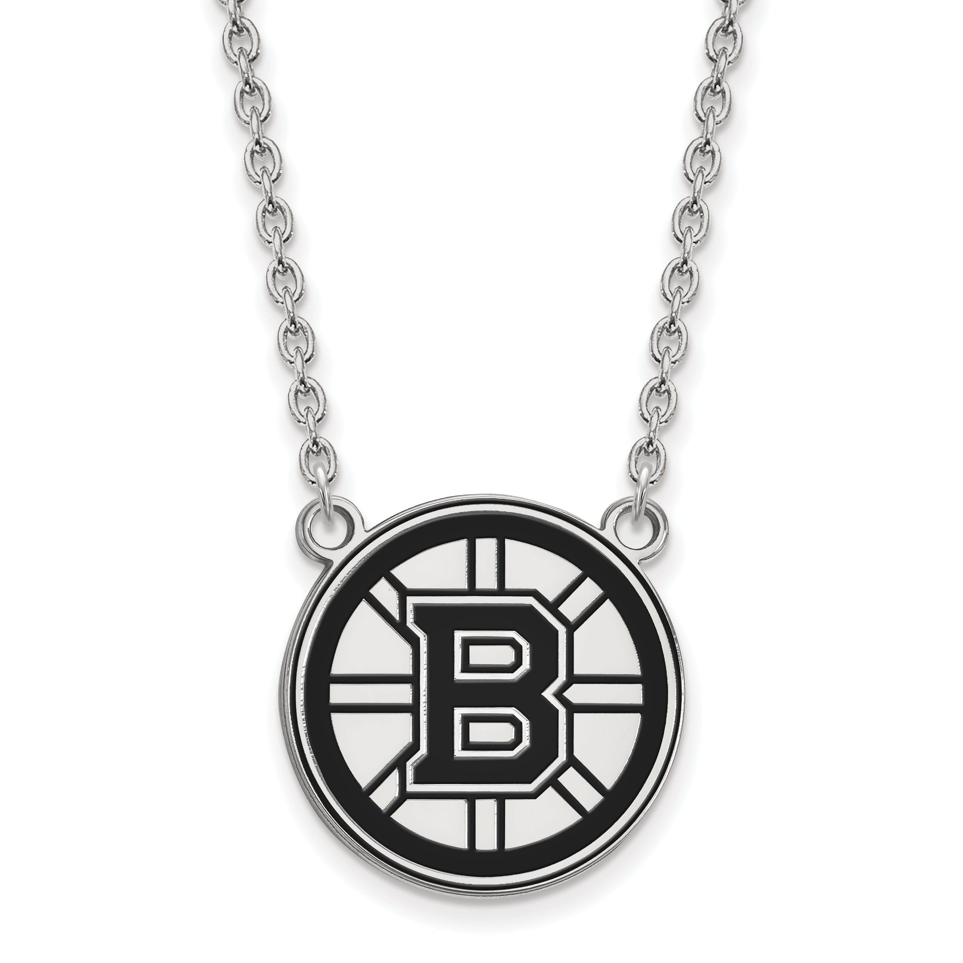 Show off your team pride with the Sterling Silver Rhodium-Plated Boston Bruins Large Enameled Pendant on an 18-inch necklace. Made for Bruins fans, this bold piece features a sturdy sterling silver base with a sleek rhodium finish that resists tarnish. The large enameled Boston Bruins logo stands out with vivid colors, making it perfect for game day or everyday wear. Its substantial size offers a striking look, while the unisex design keeps it versatile. Whether you’re in Massachusetts or elsewhere, the Boston Bruins Large Enameled Pendant by LogoArt™ is a strong choice to showcase your team spirit in style.