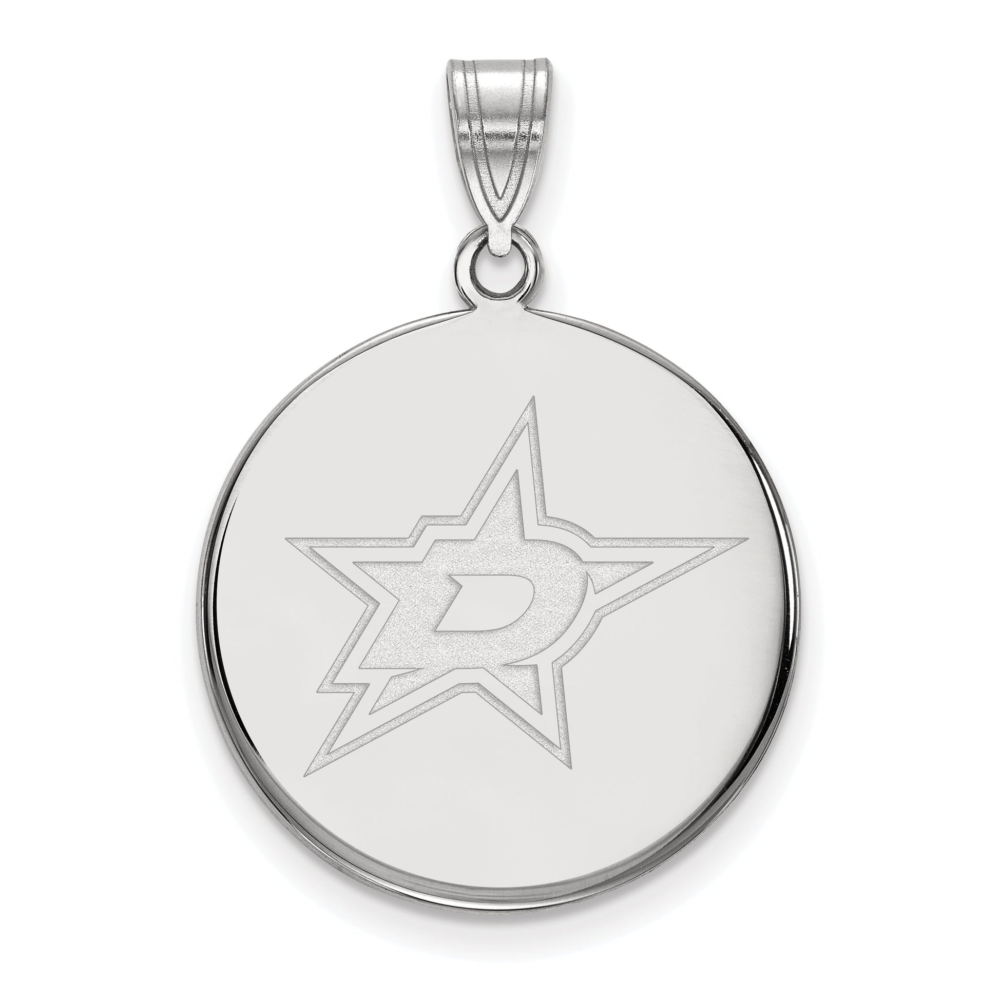 Sterling Silver Rhodium Plated Nhl Logoart Dallas Stars Large Disc Pendant