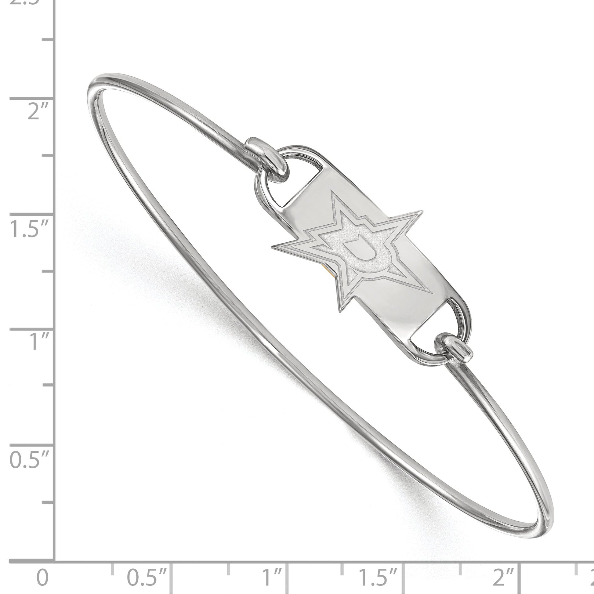 Show off your team pride with the Sterling Silver Rhodium-Plated NHL LogoArt Dallas Stars Small Center Wire Bangle. Crafted from pure 925 sterling silver, this stylish bangle shines with a sleek rhodium finish that resists tarnish. It features the iconic Dallas Stars logo, small but eye-catching, to celebrate your love for hockey. With a comfortable 7-inch wire design, it fits snugly on your wrist for daily wear. This piece combines high-quality materials with licensed team art, making it perfect for any Dallas Stars fan. Elevate your jewelry game with the Sterling Silver Rhodium-Plated NHL LogoArt Dallas Stars bangle.