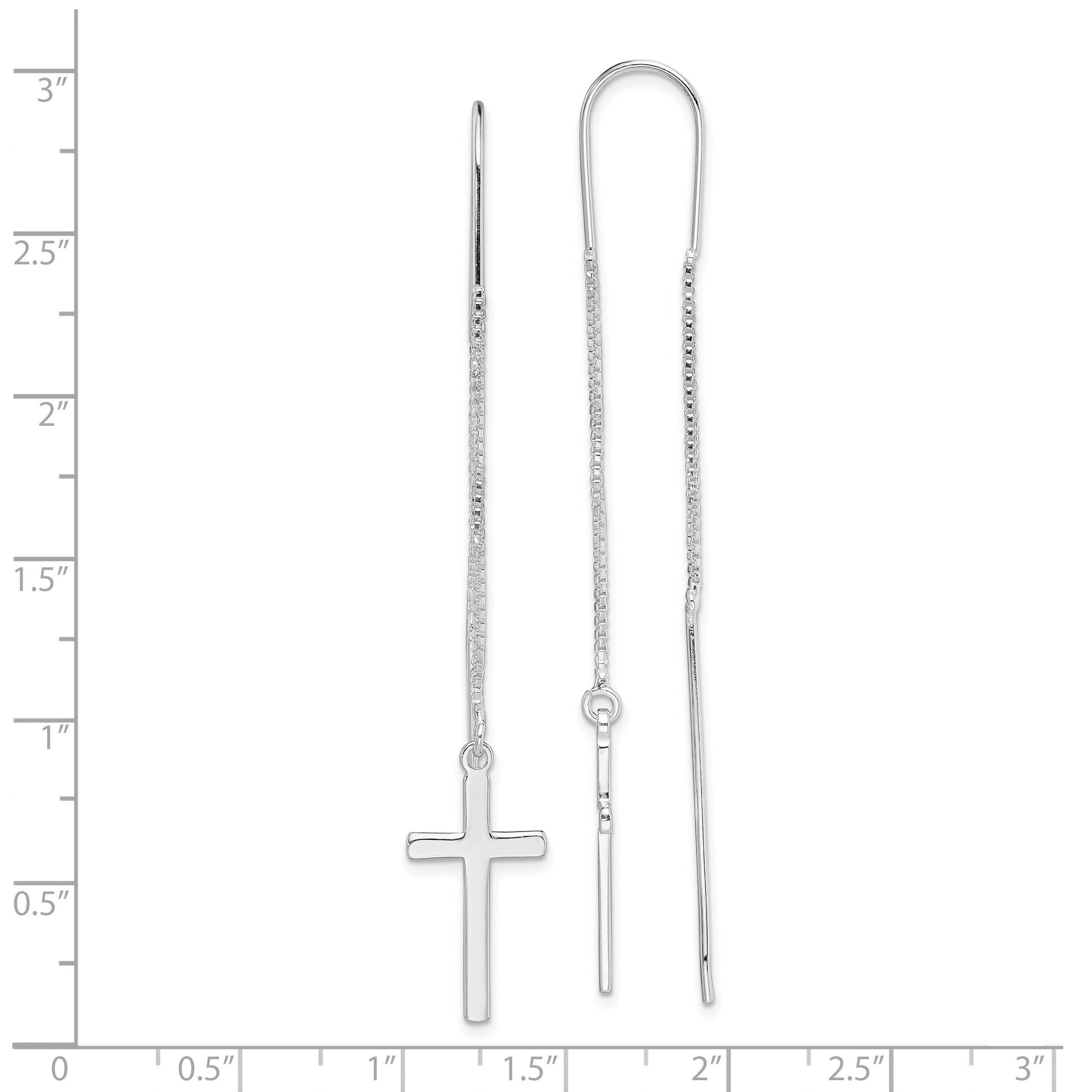 The Sterling Silver Rhodium-Plated Polished Latin Cross Threader Earrings are a stunning addition to any jewelry collection. Crafted from 925 sterling silver, these earrings boast a sleek, polished finish that catches the light with every movement. Measuring 65.22 mm in length and 10.64 mm in width, the earrings feature a rhodium plating, enhancing their silver tone and durability. Designed in a drop and dangle style, these earrings display elegant Latin crosses. Perfect for women, the threader closure ensures a secure fit, making these earrings both fashionable and practical. Let these sterling silver beauties elevate your everyday look.