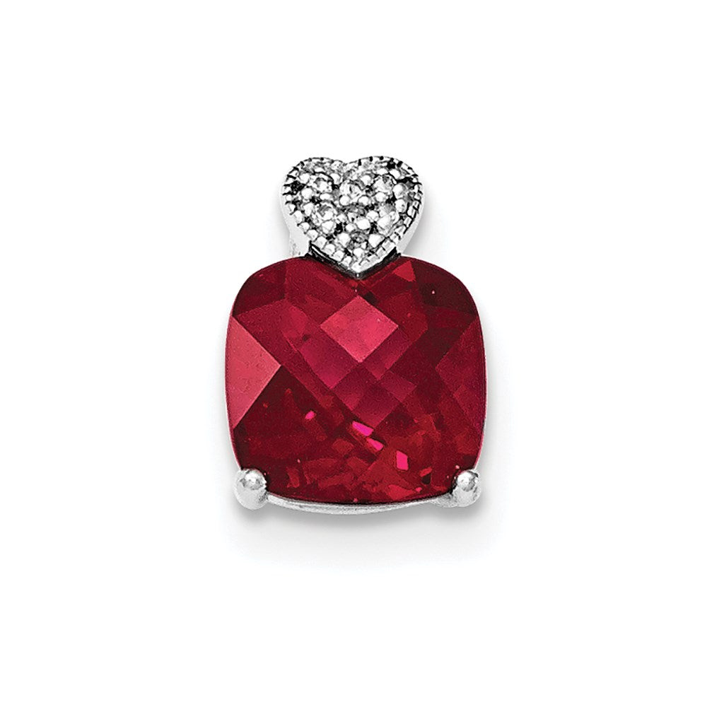 Sterling Silver Rhodium Polish White Topaz/Cr. Ruby Chain Slide Pendant