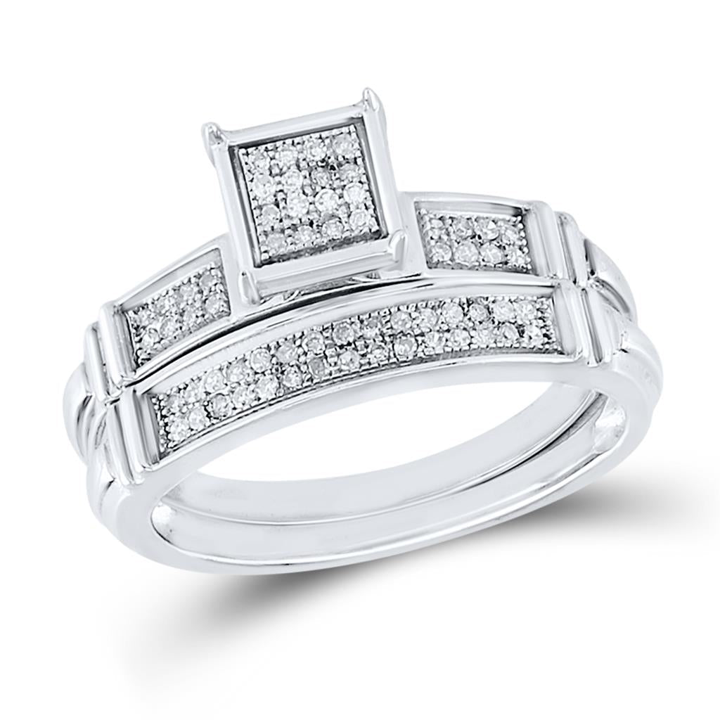 Sterling Silver Round Diamond Square Bridal Wedding Ring Set 1/5 Cttw