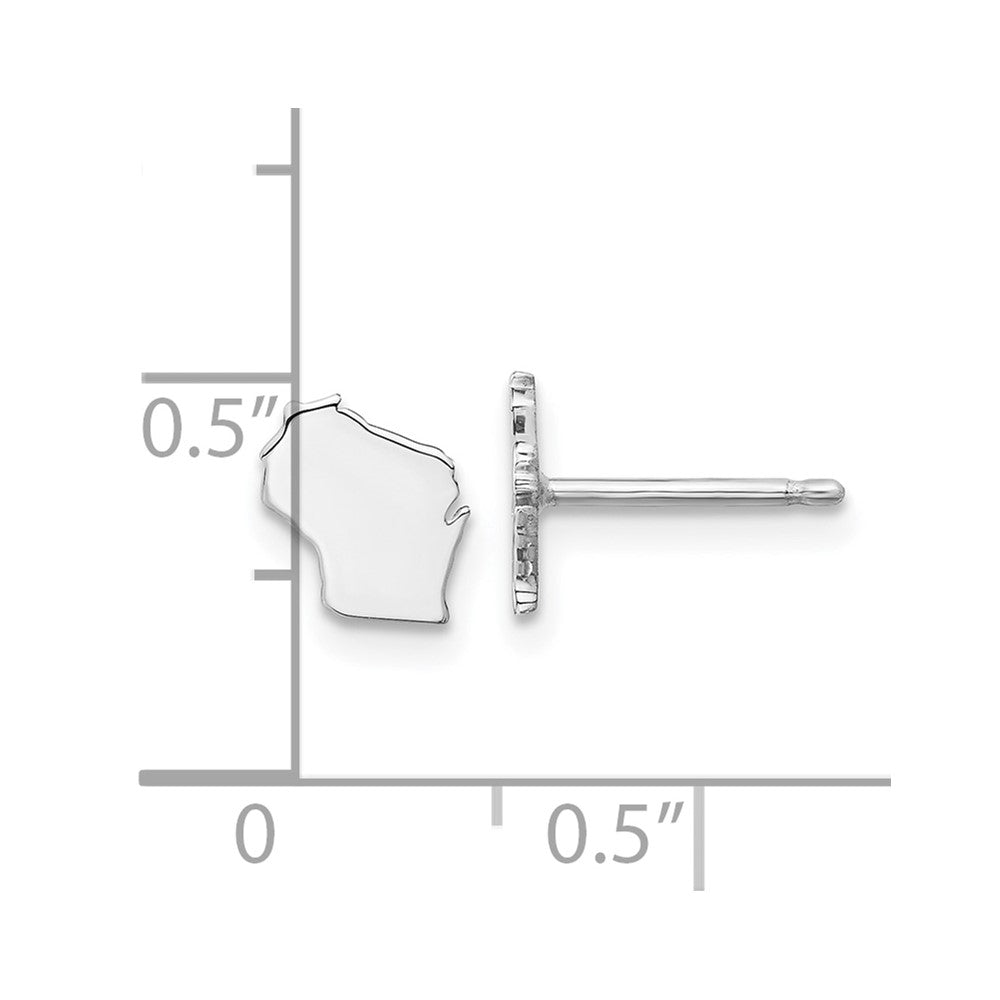 Show your love for Wisconsin with these sterling silver earrings. They are crafted from high-quality 925 silver and plated with shiny rhodium for extra durability and shine. These small, button-style earrings measure just over 7 millimeters long and nearly 7 wide, making them perfect for everyday wear. The polished finish gives them a sleek, elegant look that stands out. Designed for women, they feature a secure post and push-back closure to keep them in place. The Silver/Rhodium-Plated Wisconsin State Earrings are a charming way to celebrate your roots or show off your style with a touch of local charm.