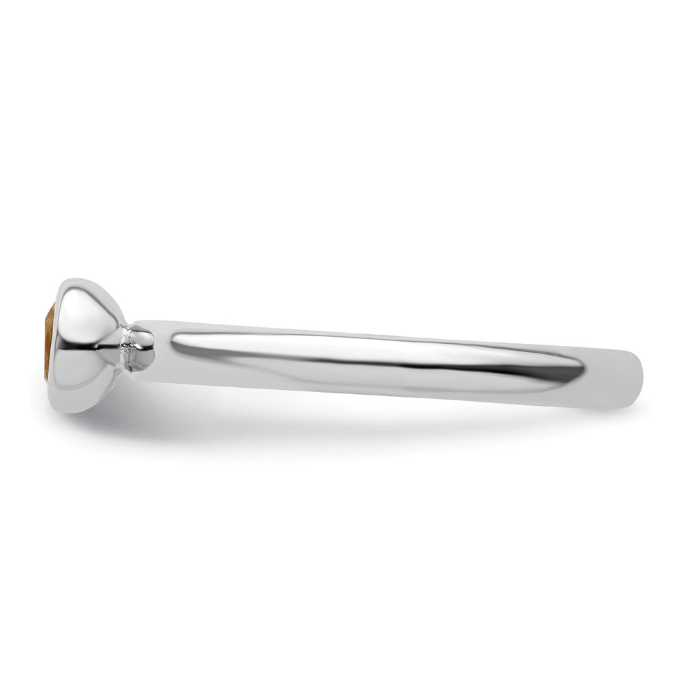 The Sterling Silver Stackable Expressions Low 4mm Round Citrine Ring is a perfect addition to your jewelry collection. Crafted from high-quality, solid 925 sterling silver, this ring features a vivid yellow citrine stone set in a bezel. The polished finish adds a bright shine, while the rhodium plating keeps it looking fresh. Its sleek 2.25mm band fits comfortably and stacks well with others. The natural, heated citrine measures 4mm and has a weight of 0.223 carats. Whether worn alone or layered, the Sterling Silver Stackable Expressions Low 4mm Round Citrine Ring adds a pop of sunny color and style to any outfit.