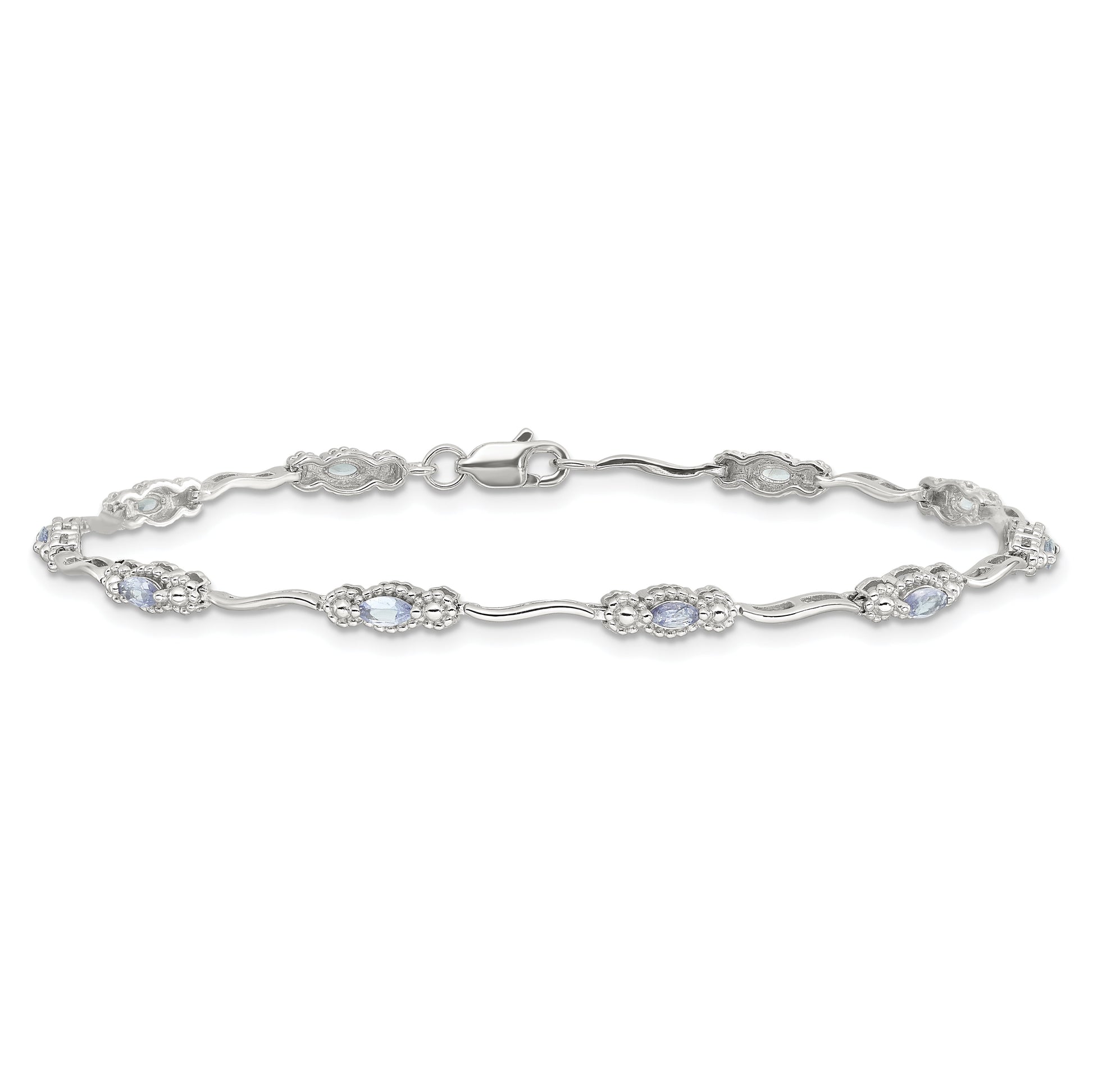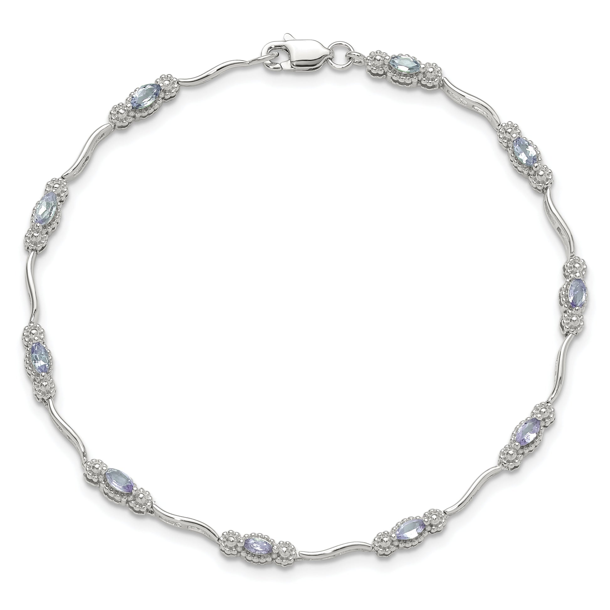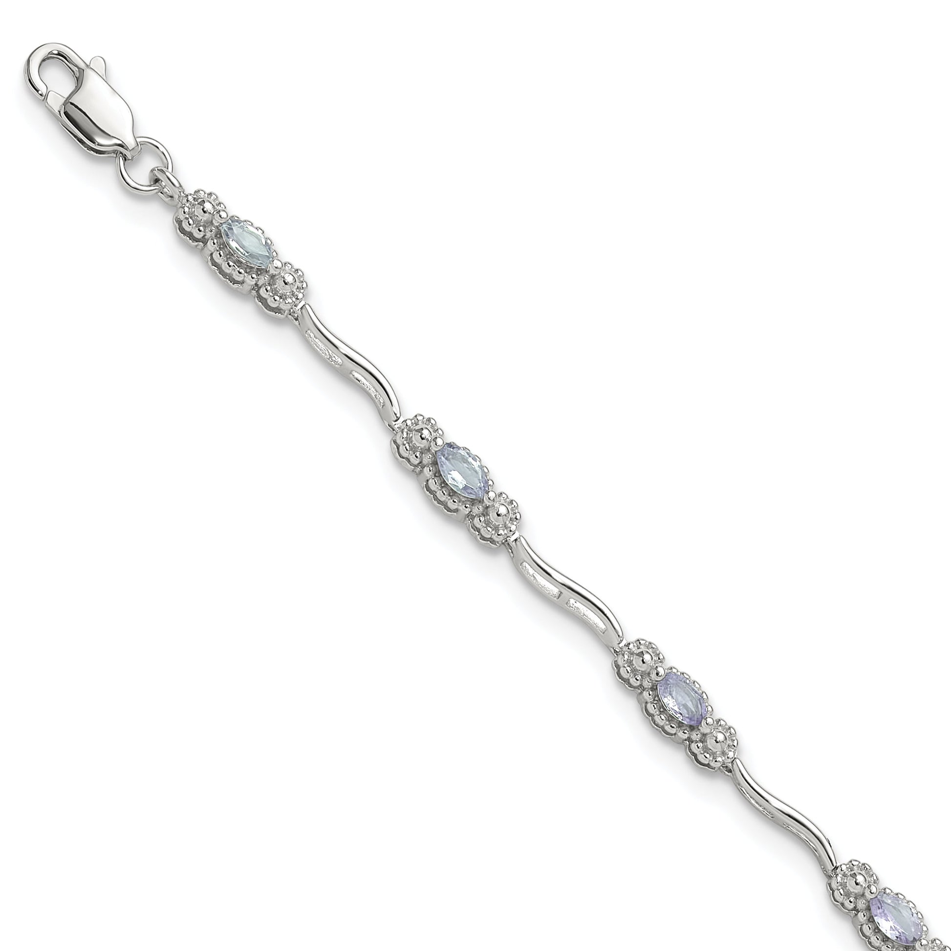 Introducing the Sterling Silver Rhodium-Plated Tanzanite Bracelet. This exquisite 7.5-inch women's bracelet shines with polished, sterling silver and is enhanced by the deep blue of natural marquise-cut tanzanite stones. The rhodium plating gives a gleaming finish, making this piece both durable and stunning. Its fancy chain design, with a width of 3.58 mm, feels delicate yet strong around your wrist, and the reliable lobster clasp secures it comfortably. As a symbol of December birthstones, the Sterling Silver Rhodium-Plated Tanzanite Bracelet makes a thoughtful gift or a dazzling addition to your jewelry collection.