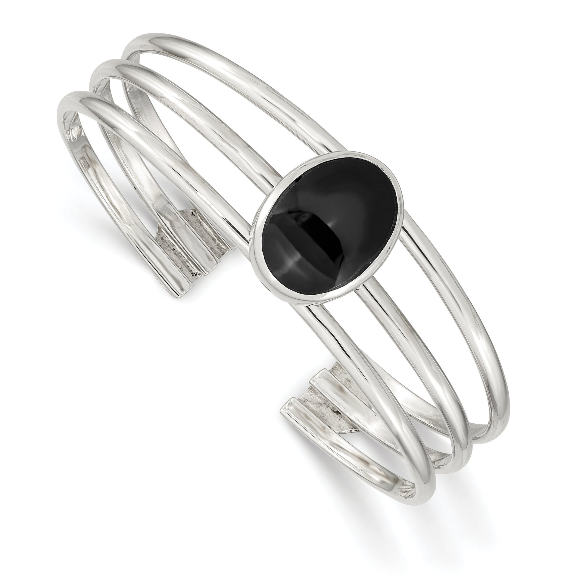 Sterling Silver Synthetic Onyx Three Strand Cuff Bangle Bracelet