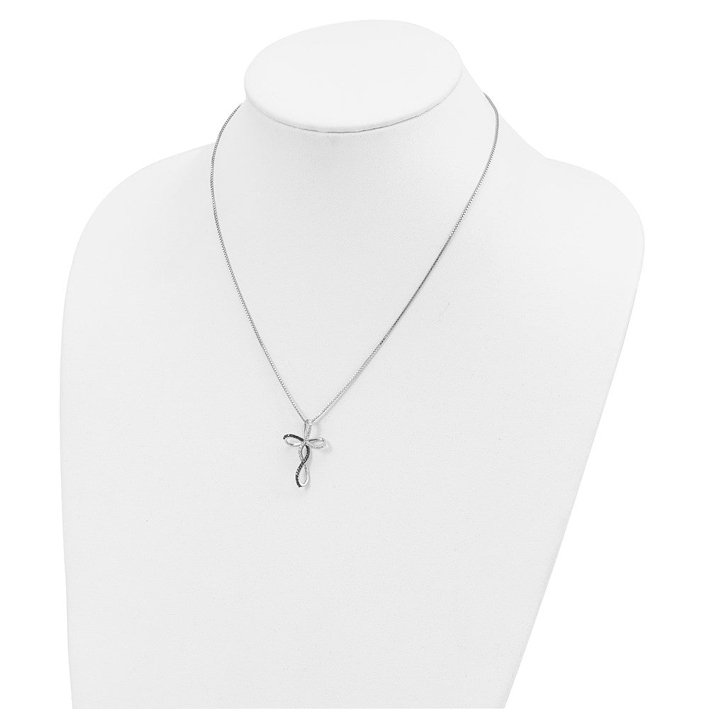 Sterling Silver White Night Rhodium-Plated Black And Diamond Cross 18 Inch Necklace With 2 Extender
